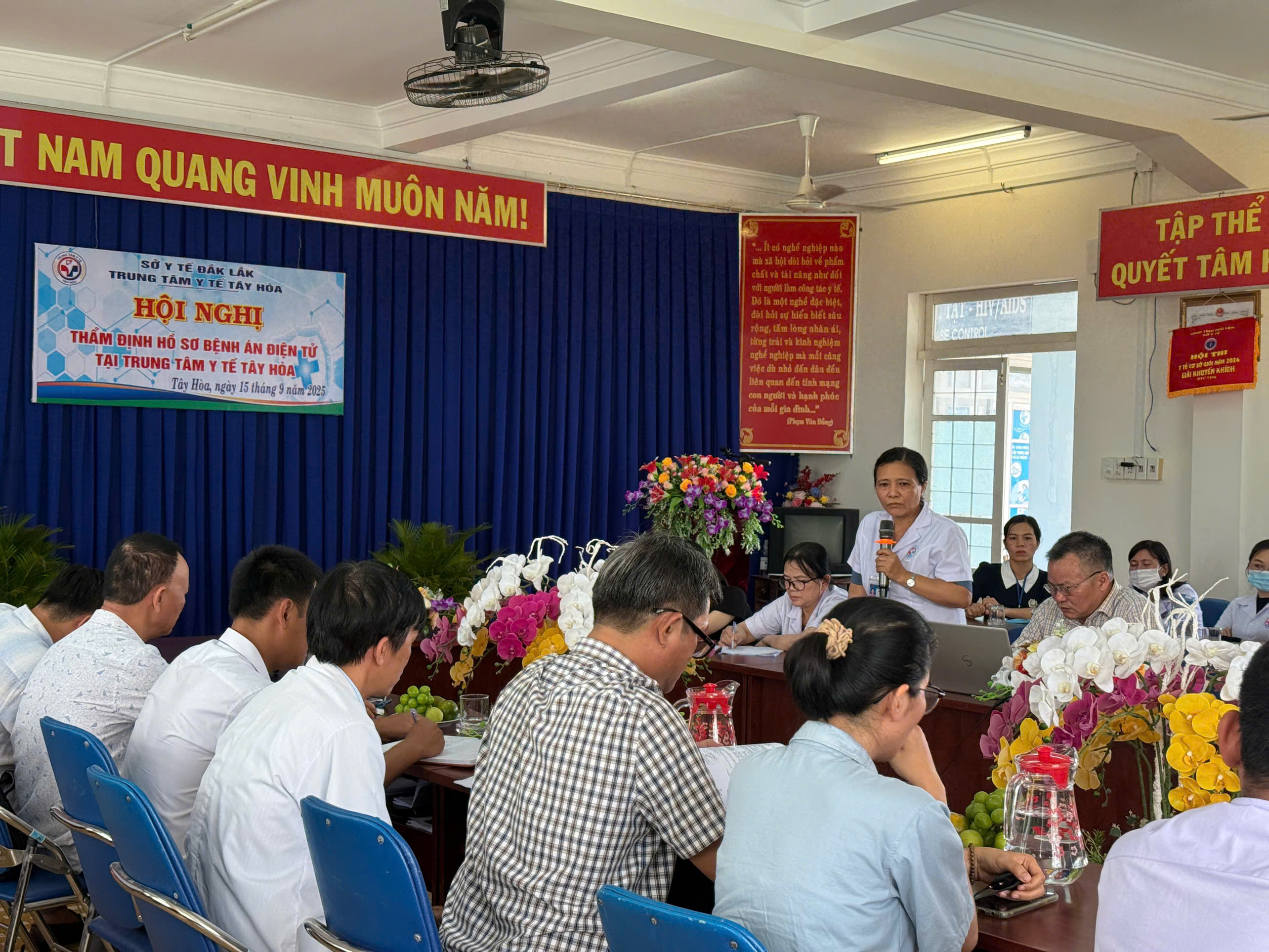 Chiều Ngày 15 tháng 9 năm 2025, Trung tâm Y tế Tây Hòa (tỉnh Đắk Lắk) đã long trọng đón tiếp Đoàn Sở Y tế tham gia Hội nghị thẩm định hồ sơ bệnh án điện tử do Trung tâm Y tế Tây Hòa chủ trì. Buổi thẩm định nhằm đánh giá mức độ đáp ứng các tiêu chí, điều kiện triển khai hồ sơ bệnh án điện tử theo quy định tại Thông tư 13/2025/TT-BYT và các văn bản liên quan.